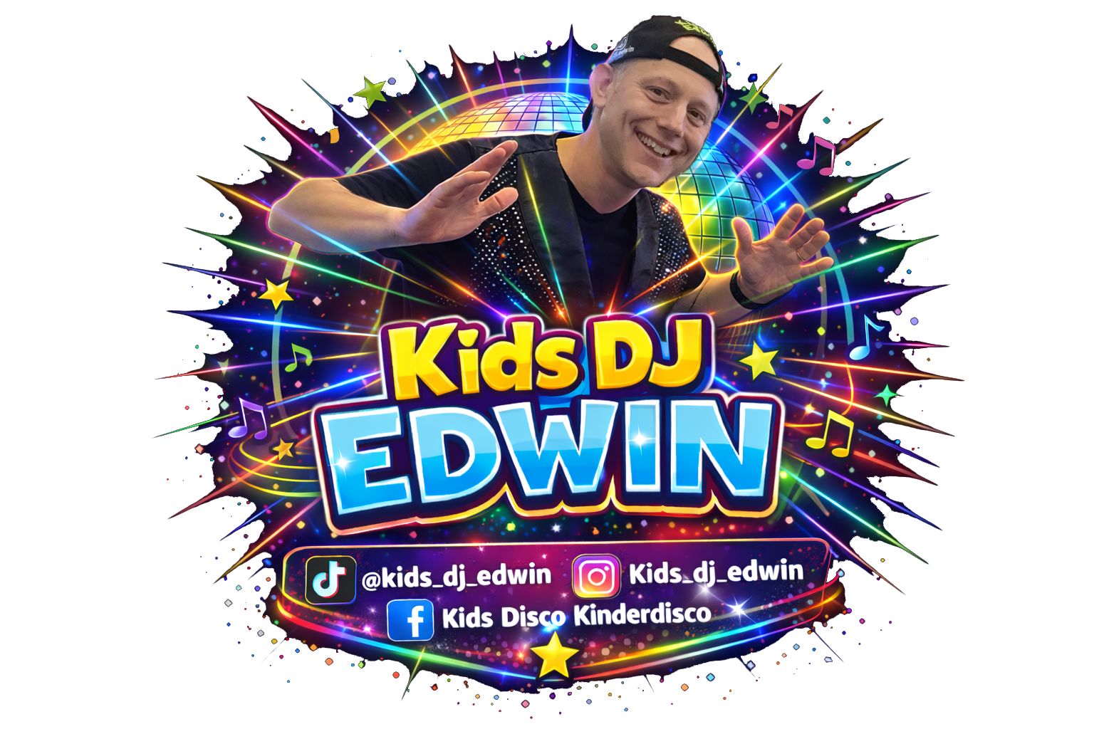 Organiseer je een kidsdisco feest of evenement met Kids DJ Edwin? Dan wil je het feest of evenement natuurlijk goed promoten. Daarom vind je op deze pagina verschillende foto’s die je kunt gebruiken voor posters, flyers en aankondigingen.